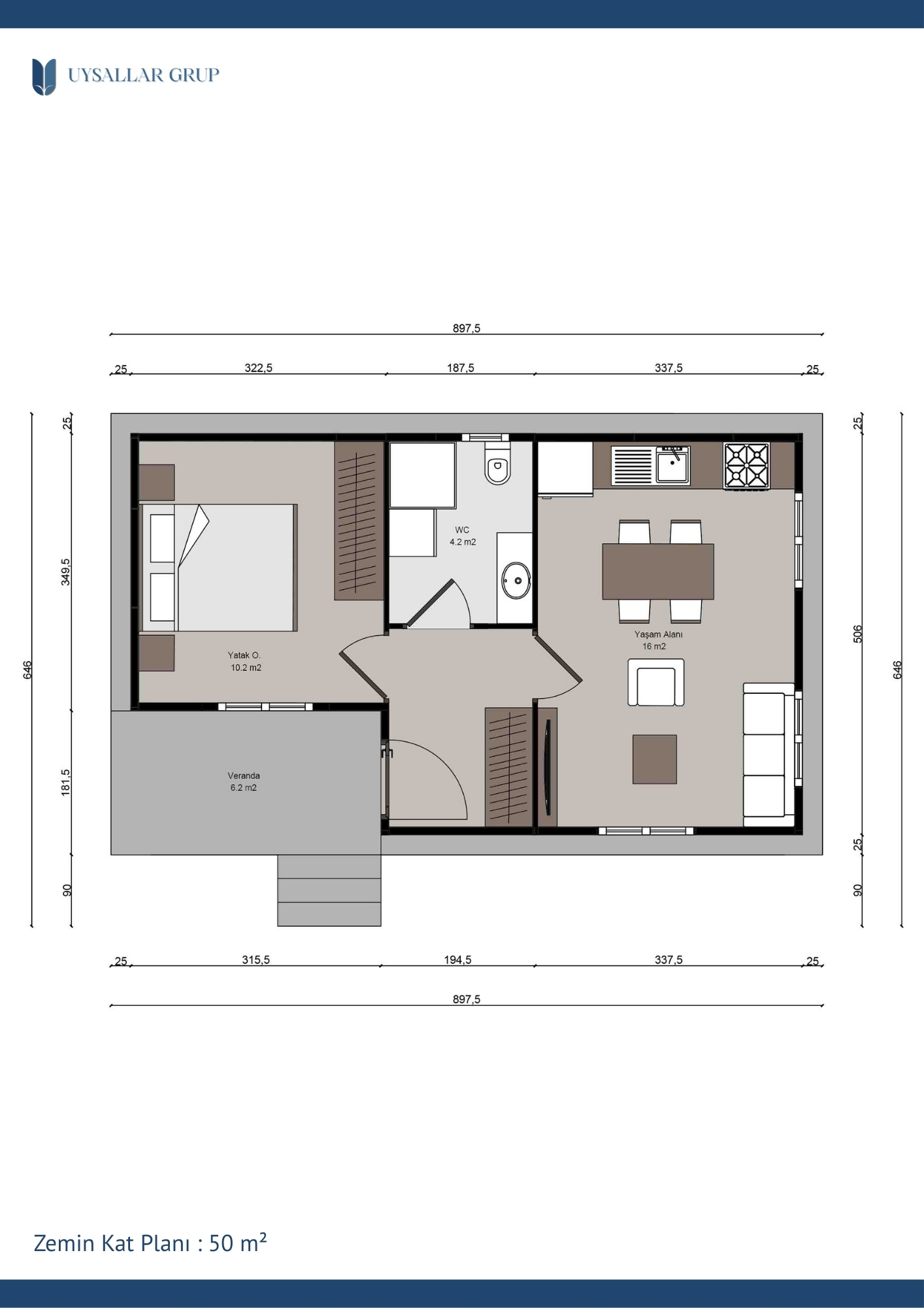 50 m² tek kat prefabrik ev modelleri, kaliteli ve dayanıklı malzemeler kullanılarak üretilir. Bu sayede: