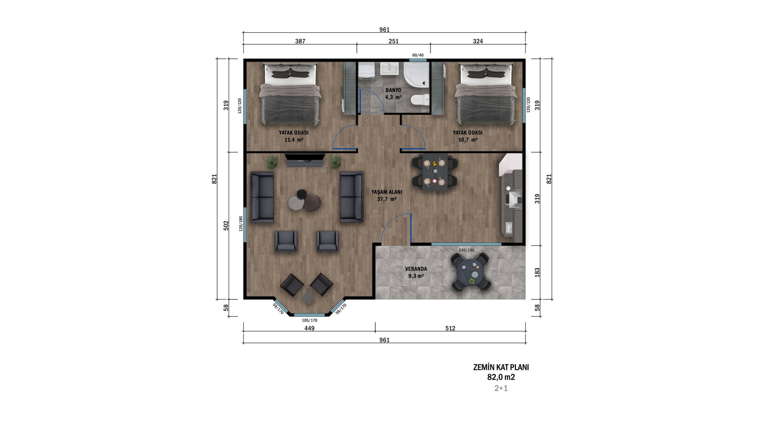 Modern mimariye sahip 82 m² prefabrik yapımız, yüksek dayanıklılık ve hızlı kurulum avantajı sunar. Depreme karşı güvenli, enerji verimliliği yüksek ve uzun ömürlü bu konut, hem şehir içi hem de kırsal alanlarda konforlu bir yaşam alanı sağlar. Estetik tasarımıyla öne çıkan yapımız, fonksiyonel iç planlaması sayesinde her metrekareyi verimli kullanır.