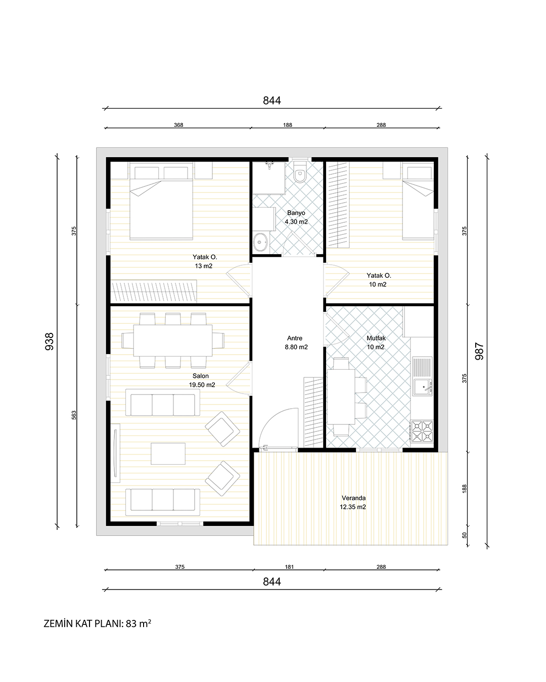Modern mimariye sahip 83 m² prefabrik yapımız, yüksek dayanıklılık ve hızlı kurulum avantajı sunar. Depreme karşı güvenli, enerji verimliliği yüksek ve uzun ömürlü bu konut, hem şehir içi hem de kırsal alanlarda konforlu bir yaşam alanı sağlar. Estetik tasarımıyla öne çıkan yapımız, fonksiyonel iç planlaması sayesinde her metrekareyi verimli kullanır.