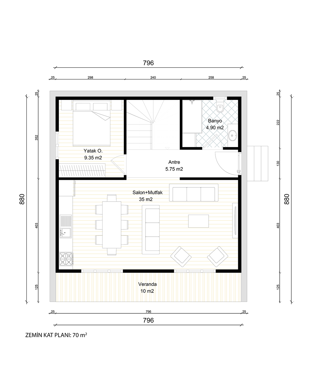 138 m² çift katlı çelik ev, modern mimarisi ve geniş yaşam alanıyla hem şehir hem de kırsal yaşam için ideal bir konut seçeneğidir. Zemin katta salon ve mutfak bir arada ferah bir yaşam alanı sunarken, üst katta geniş yatak odaları ve balkon keyifli bir dinlenme alanı sağlar. Depreme dayanıklı çelik yapısı, enerji verimliliği ve uzun ömürlü kullanımıyla aileler için güvenli ve konforlu bir yaşam alanı sunar.