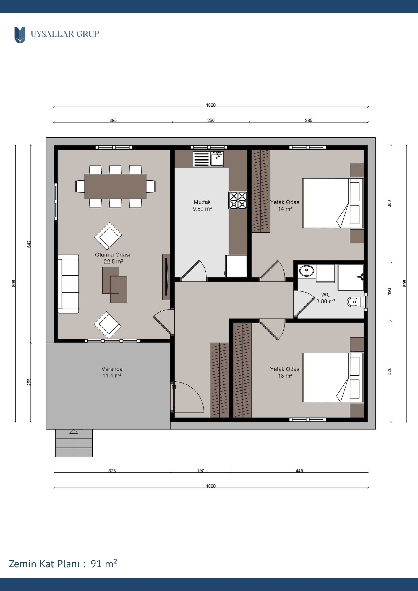 91 m²‘lik yaşam alanı, maksimum konfor ve kullanım kolaylığı sunacak şekilde tasarlanmıştır.