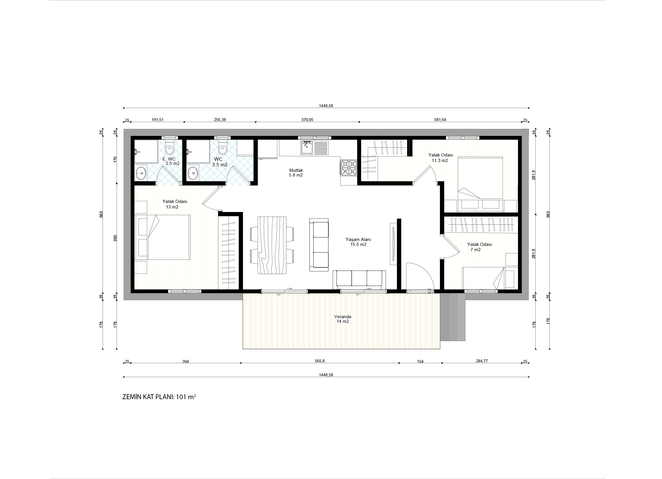 101 m² tek kat çelik ev, modern mimarisi ve kullanışlı planıyla hem şehir hem de kırsal yaşam için ideal bir konut seçeneğidir. Dayanıklı çelik konstrüksiyon sistemi sayesinde uzun ömürlü, depreme dayanıklı ve enerji verimliliği yüksek bir yapı sunar. Üç yatak odası, ferah yaşam alanı, iki WC ve geniş veranda ile ailelere konforlu bir yaşam alanı sağlar. Hızlı montajı ve düşük bakım maliyeti ile ekonomik ve pratik bir çözüm sunar.