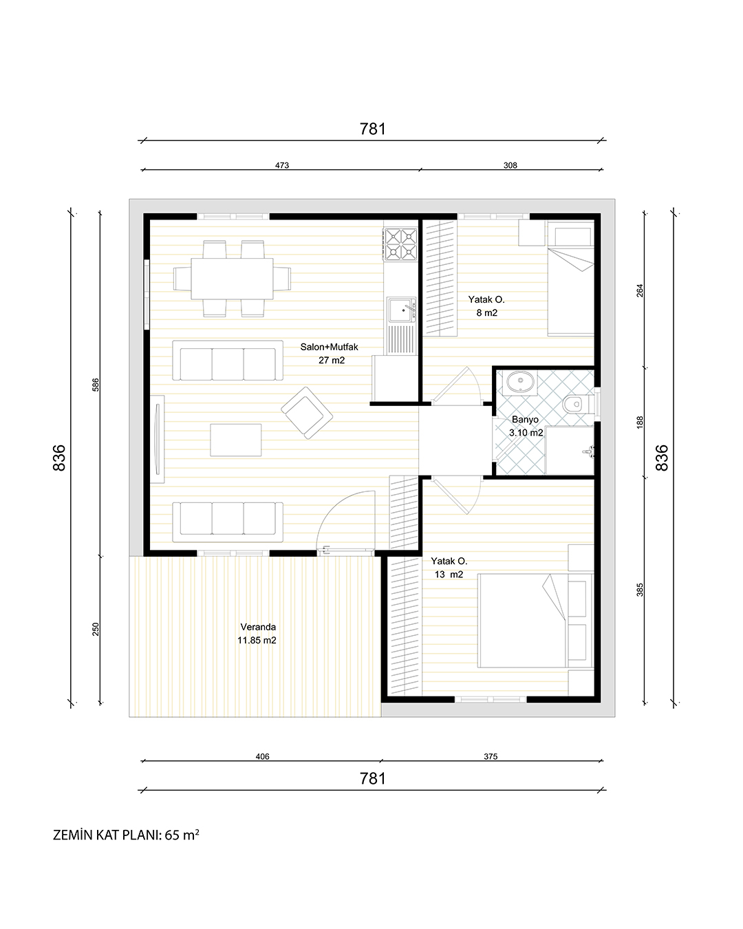 Modern mimariye sahip 65 m² hafif çelik yapımız, yüksek dayanıklılık ve hızlı kurulum avantajı sunar. Depreme karşı güvenli, enerji verimliliği yüksek ve uzun ömürlü bu konut, hem şehir içi hem de kırsal alanlarda konforlu bir yaşam alanı sağlar. Estetik tasarımıyla öne çıkan yapımız, fonksiyonel iç planlaması sayesinde her metrekareyi verimli kullanır.