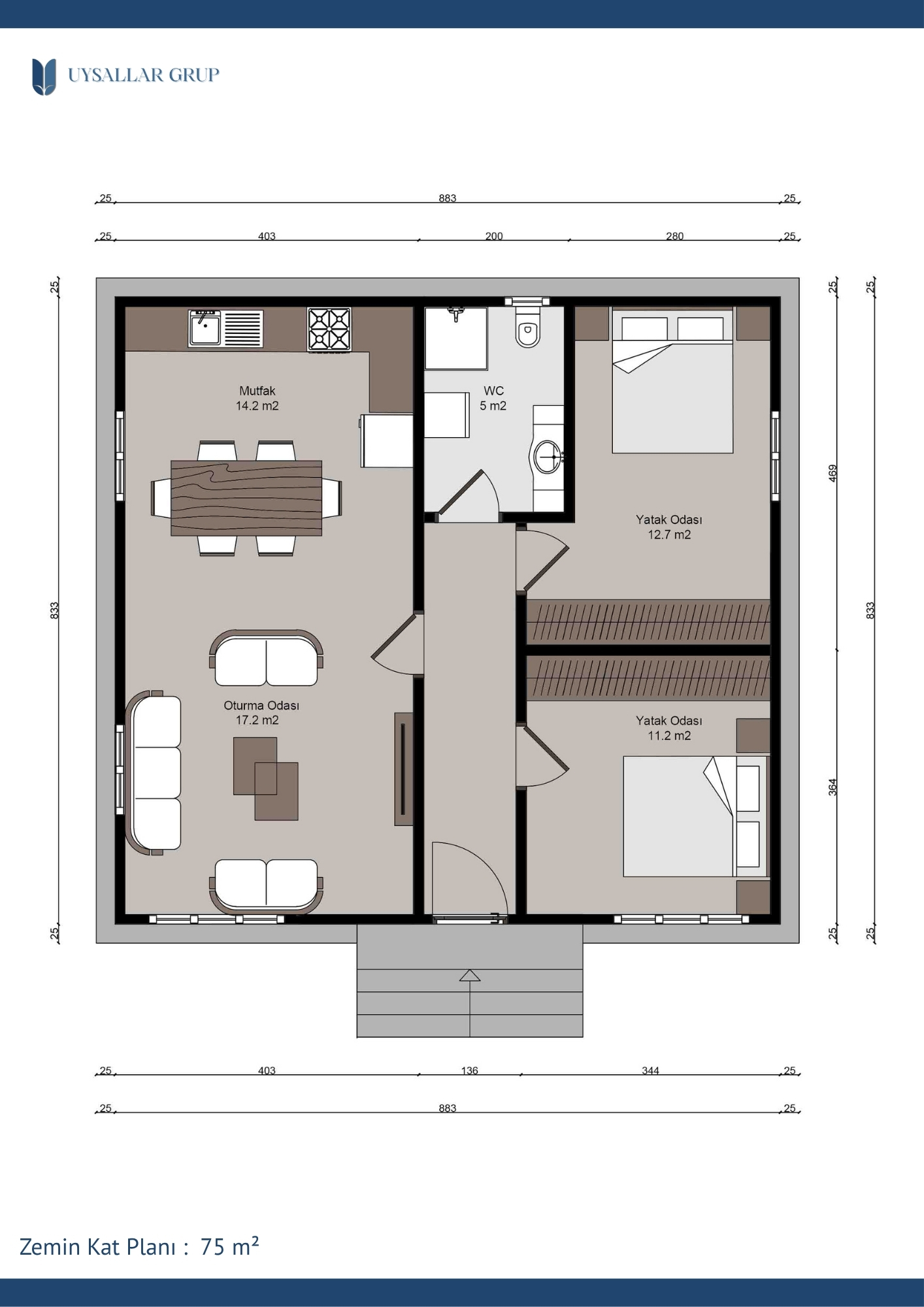 Bu plan, alan verimliliğini ön planda tutarak maksimum yaşam konforu sağlar. Kompakt ölçülerine rağmen ferah bir atmosfer sunan SS-2075, her metrekarenin özenle değerlendirildiği bir mimariye sahiptir.