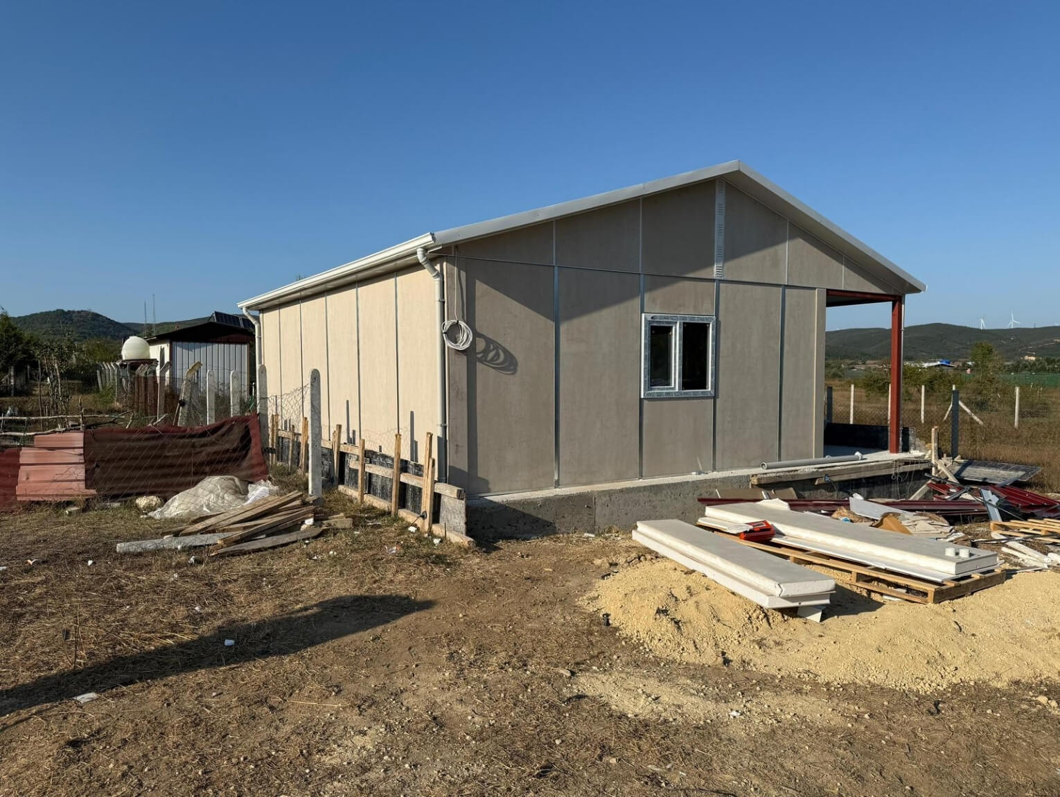 Çatalca’daki 70 m² prefabrik ev projesinde yapım süreci hızlı ve kontrollü bir şekilde ilerlemiştir. Prefabrik yapı sisteminin avantajı sayesinde üretim ve montaj aşamaları kısa sürede tamamlanmış, arazi üzerindeki çalışmalar minimum sürede sonuçlandırılmıştır. Bu durum hem zaman hem de maliyet açısından önemli bir avantaj sağlamıştır.